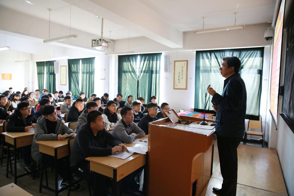 11月27日,我校党委书记潘福林来到七教7702教室,面对面为学生讲解十九大精神,给机制1645-1646班全体同学上了一堂生动的思政课。