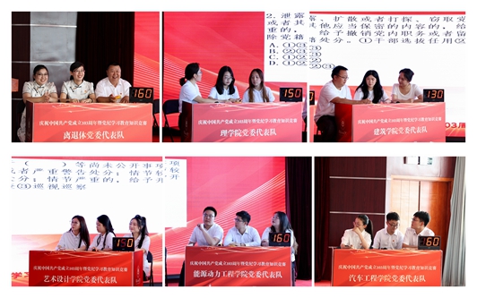 经过激烈比拼,最终艺术设计学院党委代表队获得第一名,能源动力工程学院党委代表队获得第二名,离退休党委代表队获得第三名,理学院党委代表队、建筑学院党委代表队、汽车工程学院党委代表队获得优秀奖,艺术设计学院党委代表队选手徐彤彤、能源动力工程学院党委代表队选手胡延增、汽车工程学院党委代表队选手王雨获得优秀选手奖,机关党委等10个基层党委、党总支获得优秀组织奖。