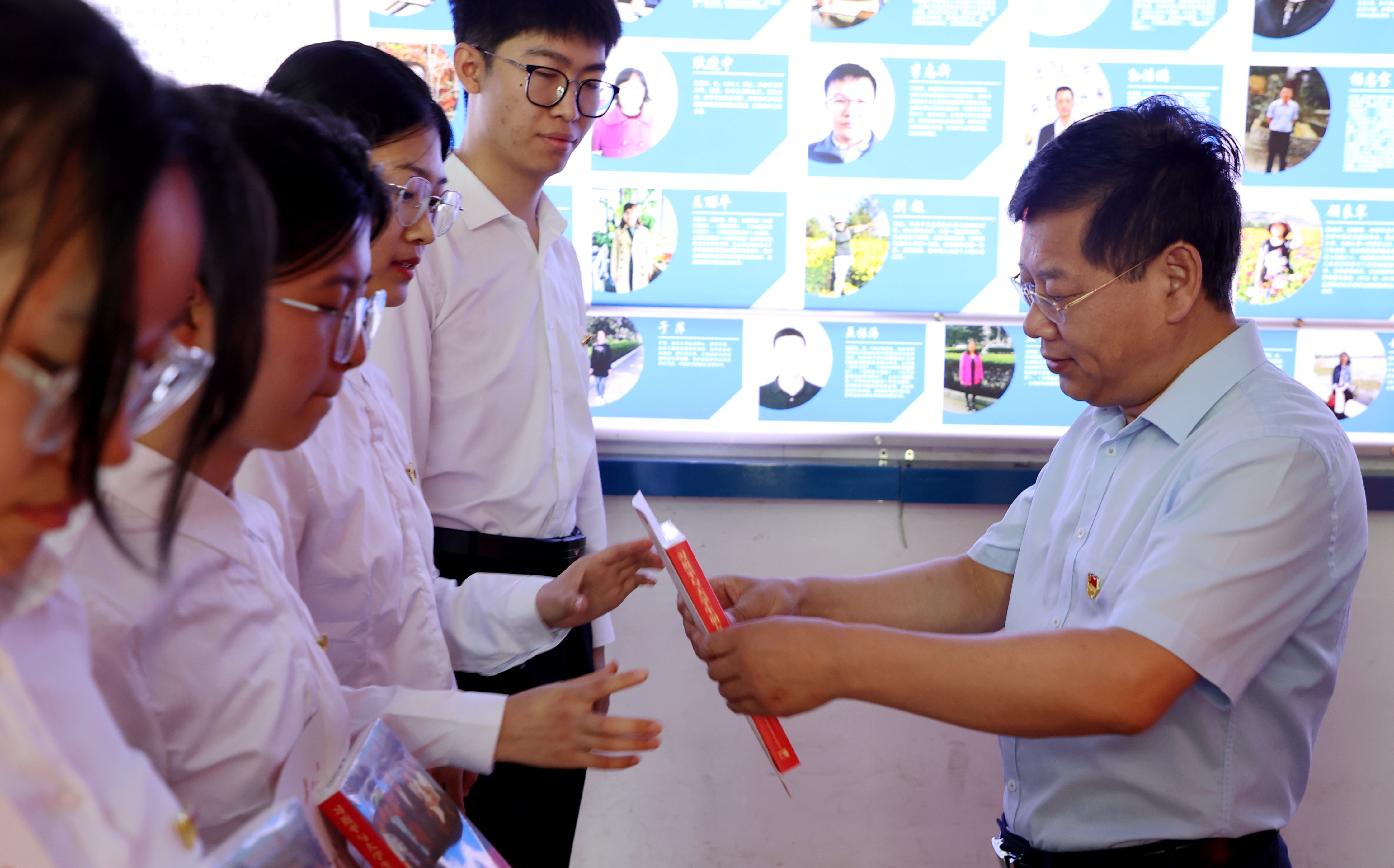 陈权书记为与会学生党员颁发“党员政治生日贺卡”,并赠送书籍《习近平与大学生朋友们》。“政治生日”贺卡上印有入党誓词和陈权书记亲自写给学生党员们的寄语。“不忘初心,牢记使命,争做让党放心、爱国奉献、担当民族复兴重任的时代新人”,深情寄语承载着陈权书记对学生党员们的殷切期望和美好祝愿。