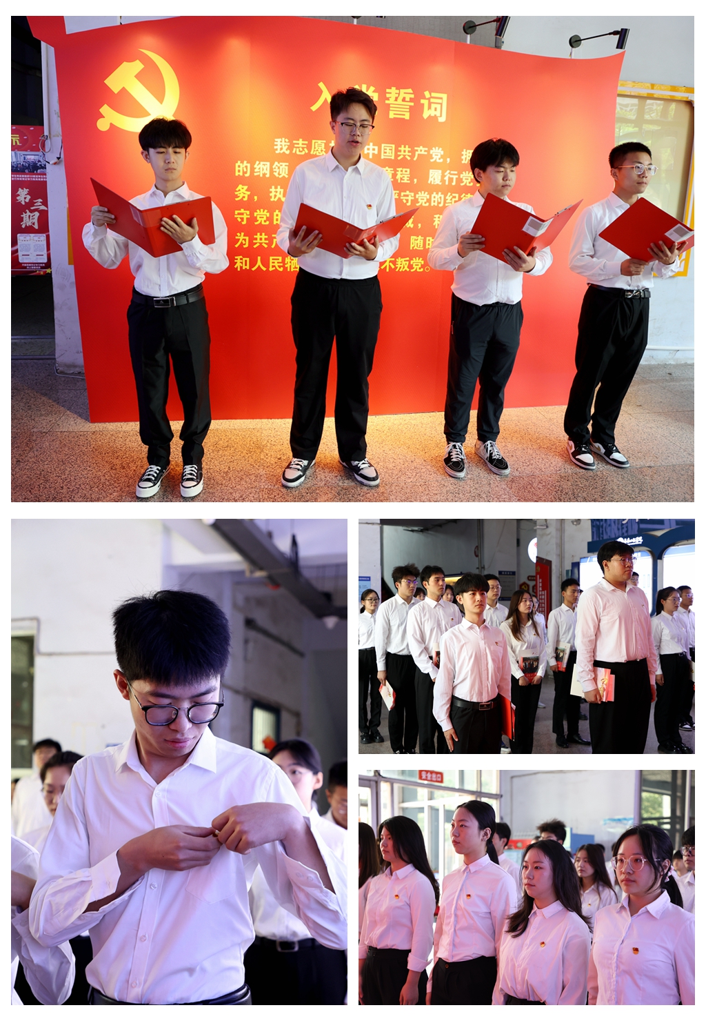 大会在庄严的国歌声中拉开序幕。为鼓励新党员赓续党的光荣传统,计算机技术与工程学院党委书记秦忠为新发展党员佩戴党徽。