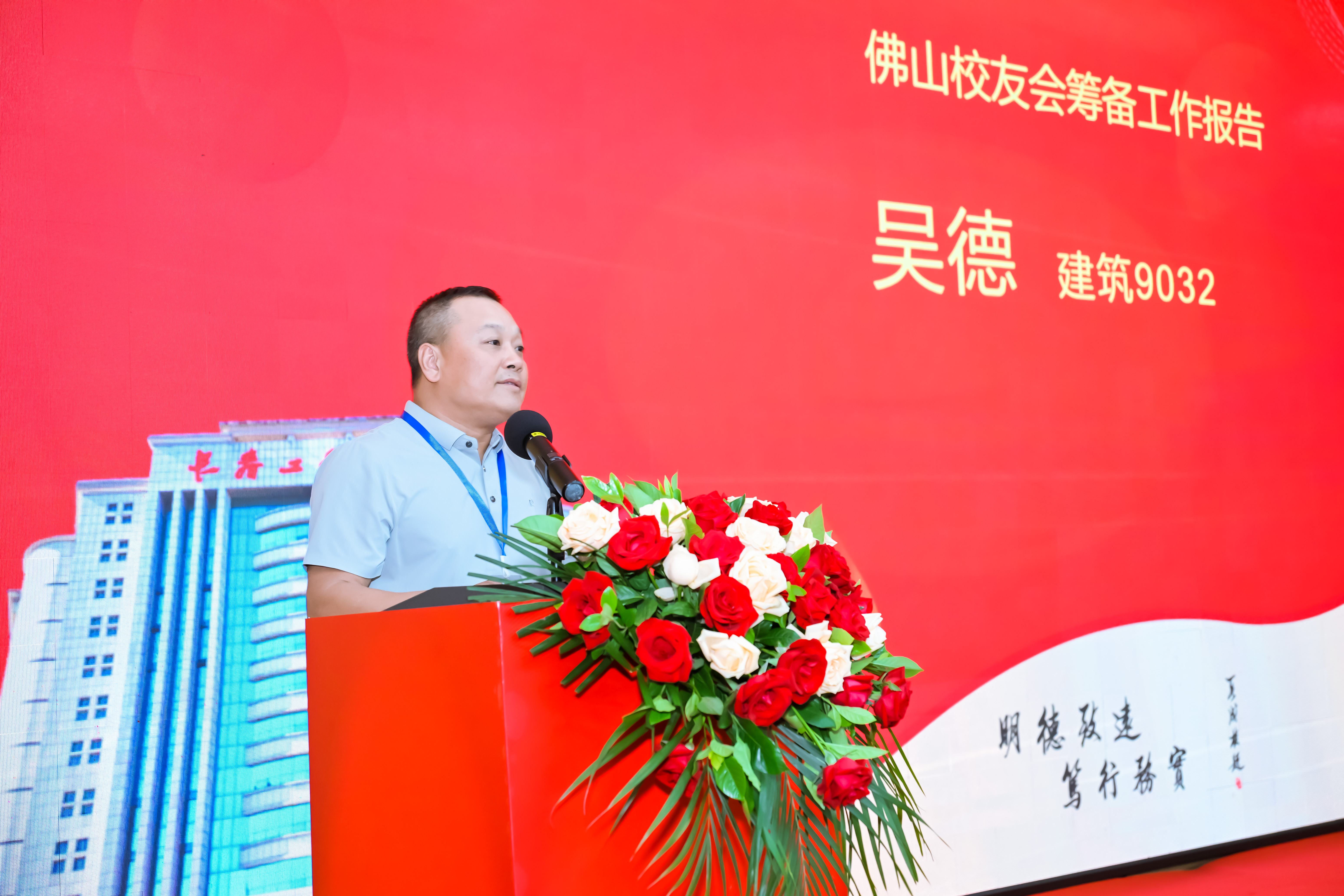 广东校友会副会长刘志坚在会上讲话。他表示,3年前,佛山校友会开始筹建,在3年的时间里,筹备组成员们付出了大量心血,做了大量工作。他希望佛山校友会在胡国勇会长及理事会的带领下,搭建好校友联络的平台,为校友们做好服务,助力母校的发展。