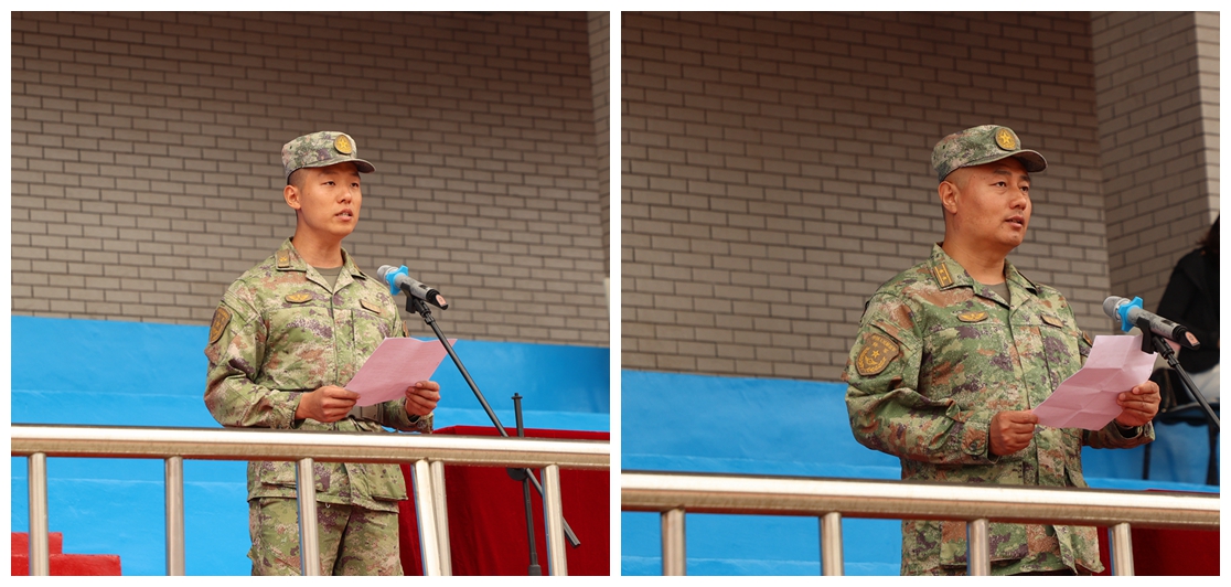 承训部队教官夏天阳作为教官代表发言。他表示,在接下来的军训中一定会科学组织、尽职尽责,严格管理、以身作则,圆满完成任务。