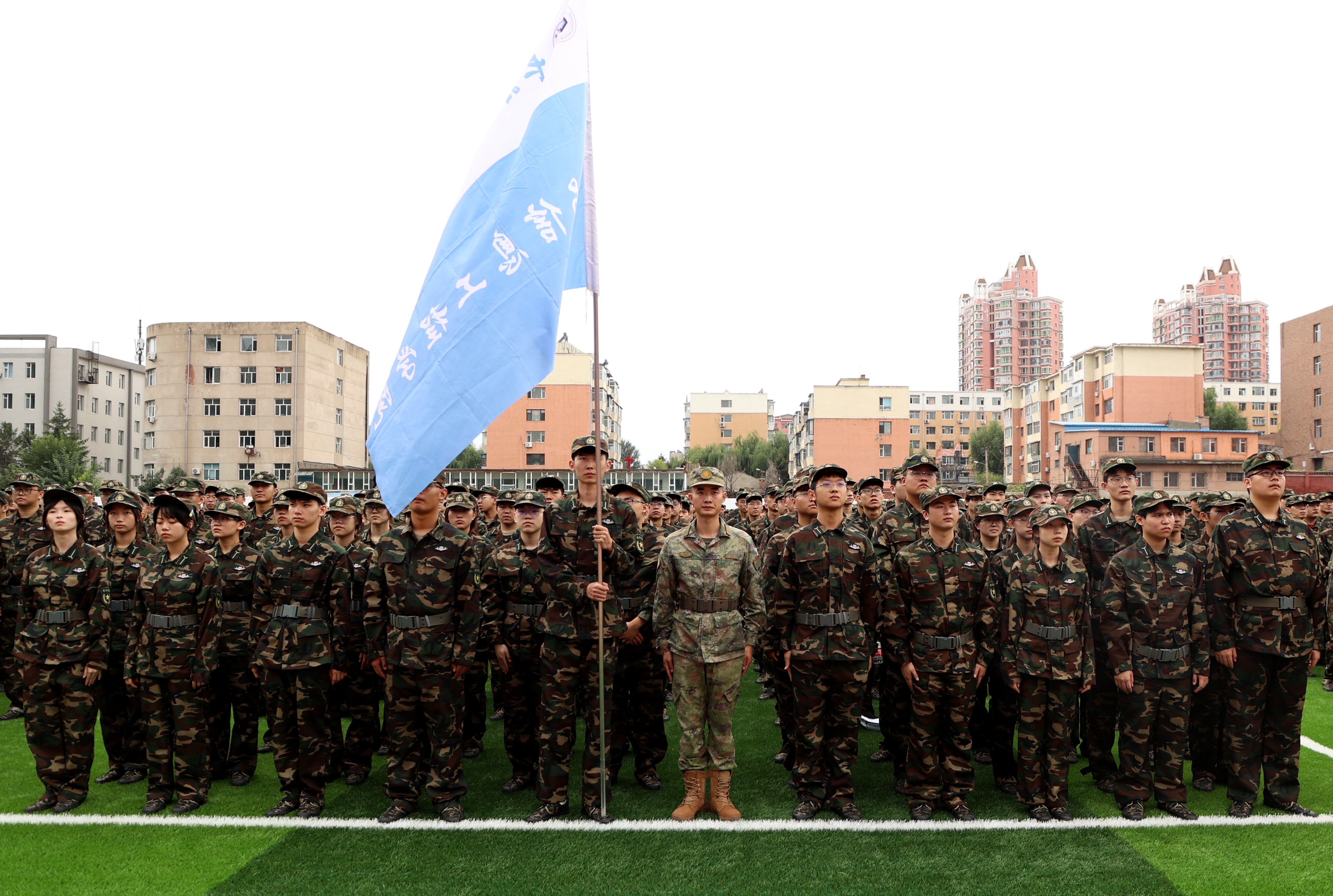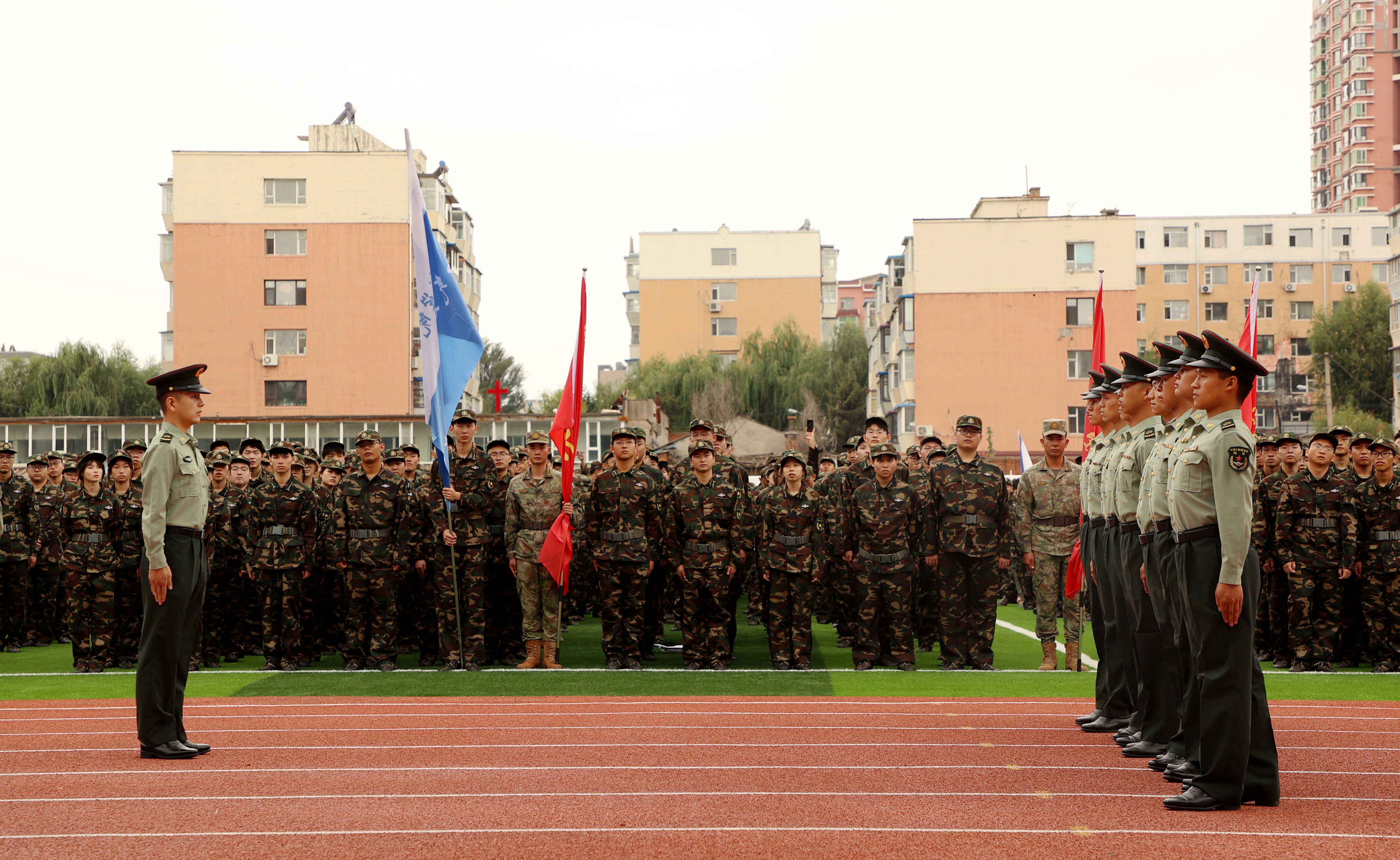 开营仪式在铿锵有力的《中国人民解放军军歌》中结束,也标志着军训的正式开始,来自16个学院的4000余名大一新生将接受为期19天的军训。