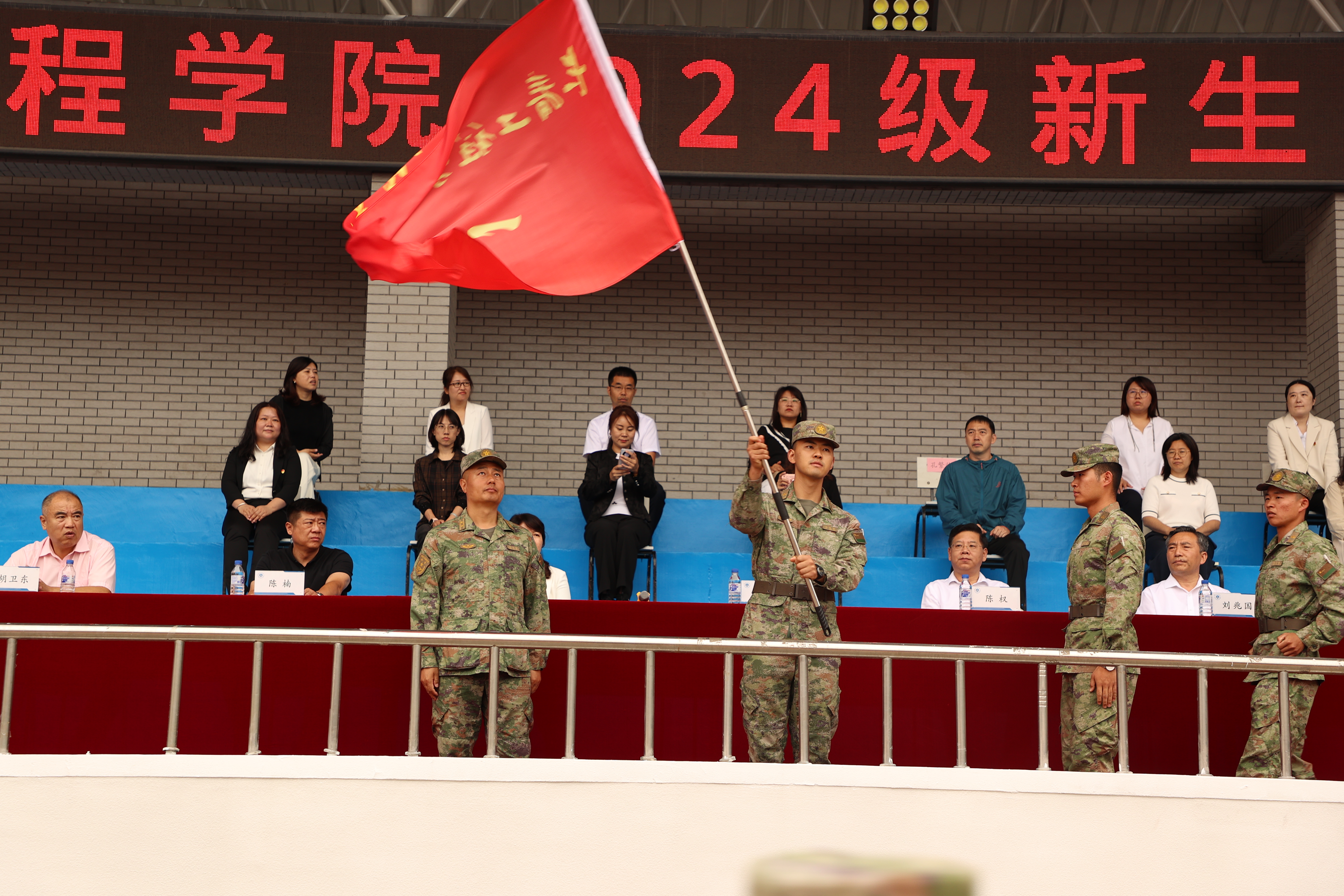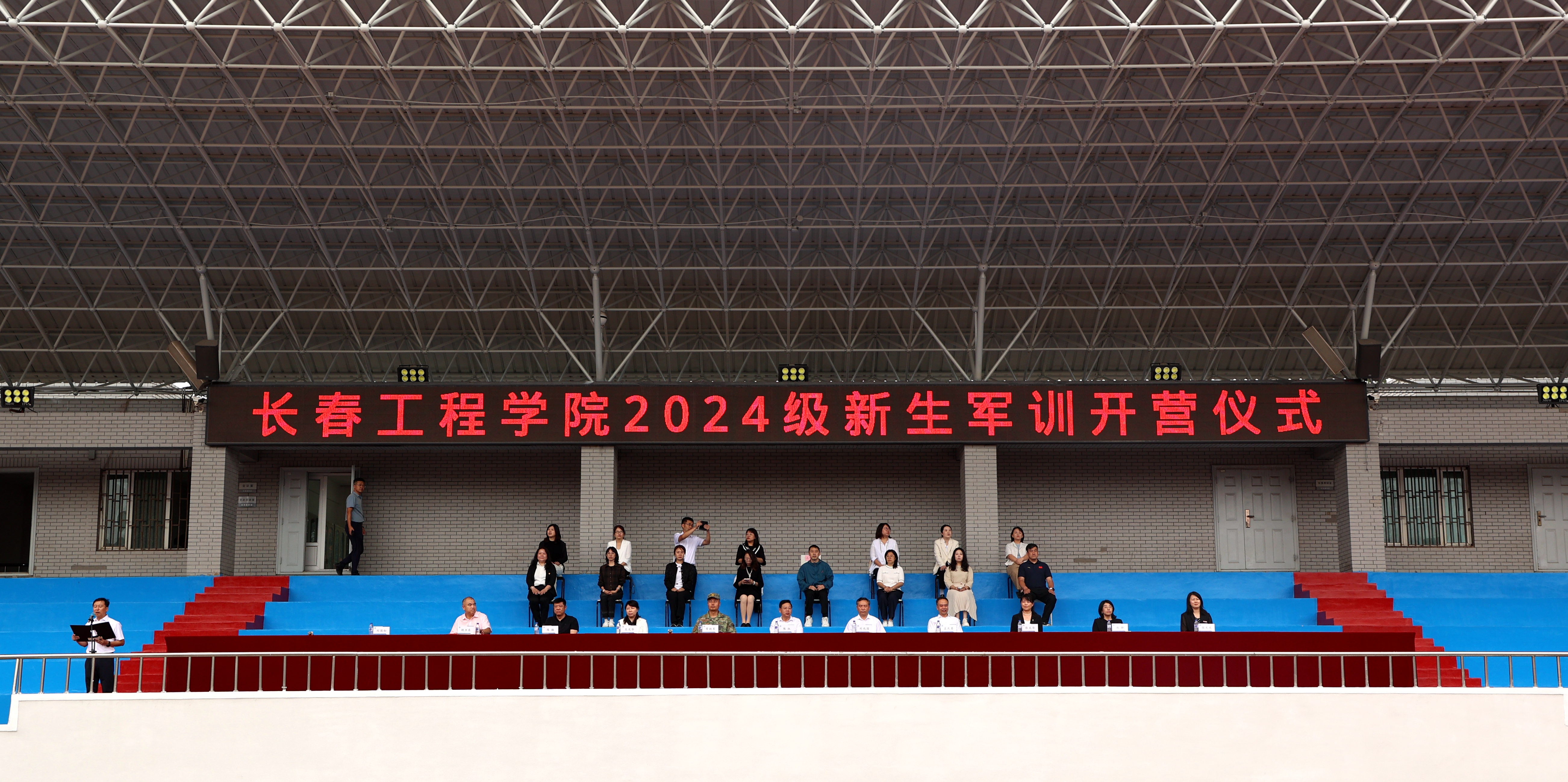 mk体育在线登录入口china官方网站学生工作处、体育教研部、教务处、大学生创新创业教育学院、团委相关部门负责人,各学院党委副书记和辅导员,全体承训教官及2024级全体参训学生参加军训开营仪式。