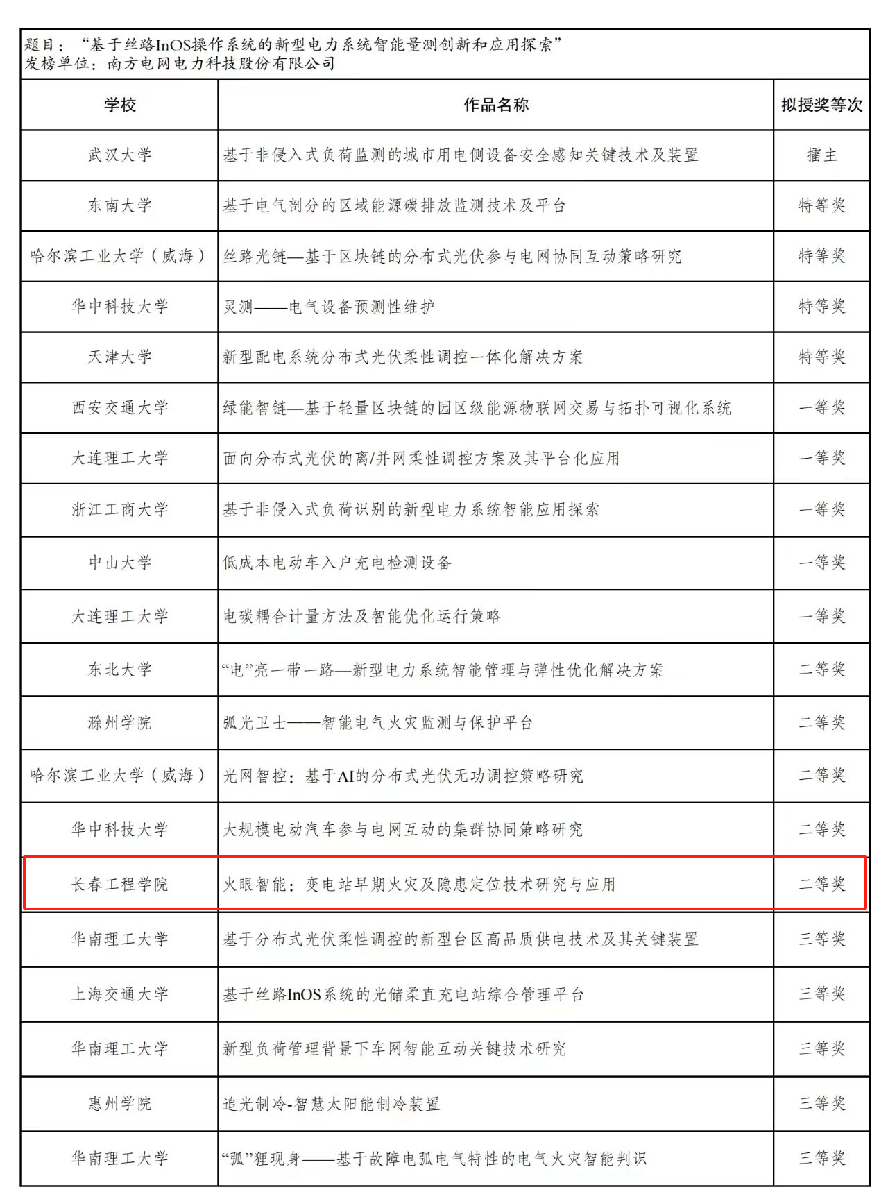 “揭榜挂帅”专项赛以“政企发榜、竞争揭榜、开榜签约”的方式,由政府、企业等单位基于自身需求出题,组委会面向高校广发“英雄帖”,学生团队打擂揭榜。我校的获奖项目入围“南方电网电力科技股份有限公司-基于丝路InOS 操作系统的新型电力系统智能量测创新和应用探索”赛道的终审决赛,该项目攻克了在复杂环境下的变电站超早期火灾预测与隐患定位难题,为电力系统的稳定运行提供了重要保障。这一突破不仅提升了变电站的智能化运维水平,也为电力行业的发展提供了坚实基础。