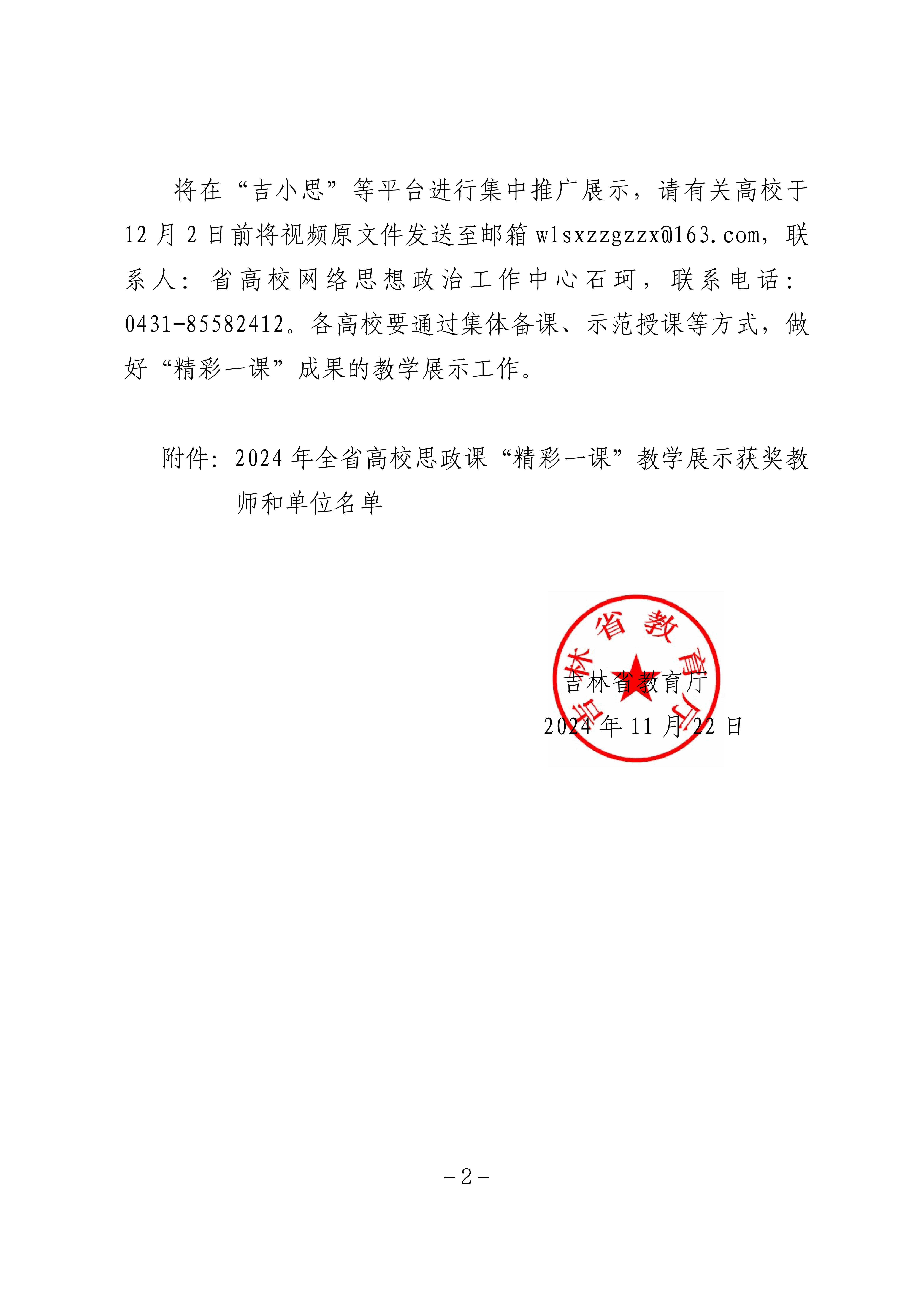 近日,吉林省教育厅发布了2024 年全省高校思政课“精彩一课”教学展示获奖教师和单位名单,我校教师王欣欣获《中国近现代史纲要》组一等奖,李雪妍、田雨泽分别获《毛泽东思想和中国特色社会主义理论体系概论》《形势与政策》组三等奖。