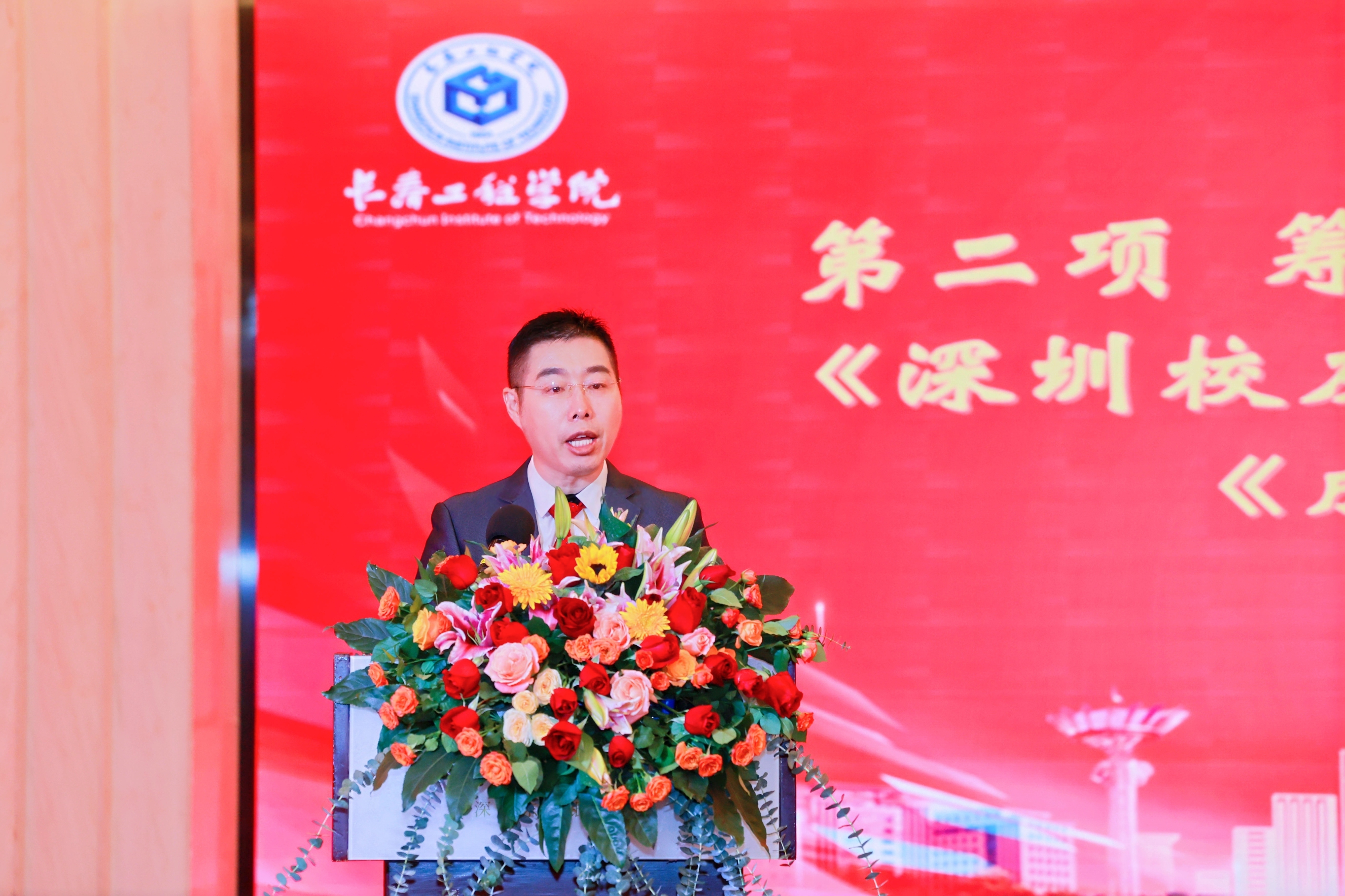 陈权书记向深圳校友会授会旗并致辞。他代表母校和校友总会向深圳校友会的成立表示热烈祝贺,并提出了四点殷切希望,一是希望深圳校友会建成一个最具创情的校友会,能够在广聚四方英才、广纳四方文化、广融四方习惯的平台上,成为团结校友,沟通感情的组织;二是希望深圳校友会建成一个最具创新的校友会,能够建成一个广大校友互帮互助,研究学术,交流思想,探究未来,谋划、推动事业不断向前发展的平台,成为最有创新方式的组织;三是希望深圳校友会建成一个最具创富的校友会,能够通过校帮引领行帮、带动商帮、提升乡帮,实现帮帮相助,互联互通,通过引领的作用,加强与各地校友会的沟通联络,实现感情共有、资源共享、优势共得、财富共聚;四是希望深圳校友会建成一个最具创未来的校友会,每位校友的未来都是可期的,希望深圳校友会带领深圳校友们共创美好的未来。最后他祝福深圳校友会在会长及理事会的带领下越办越好。