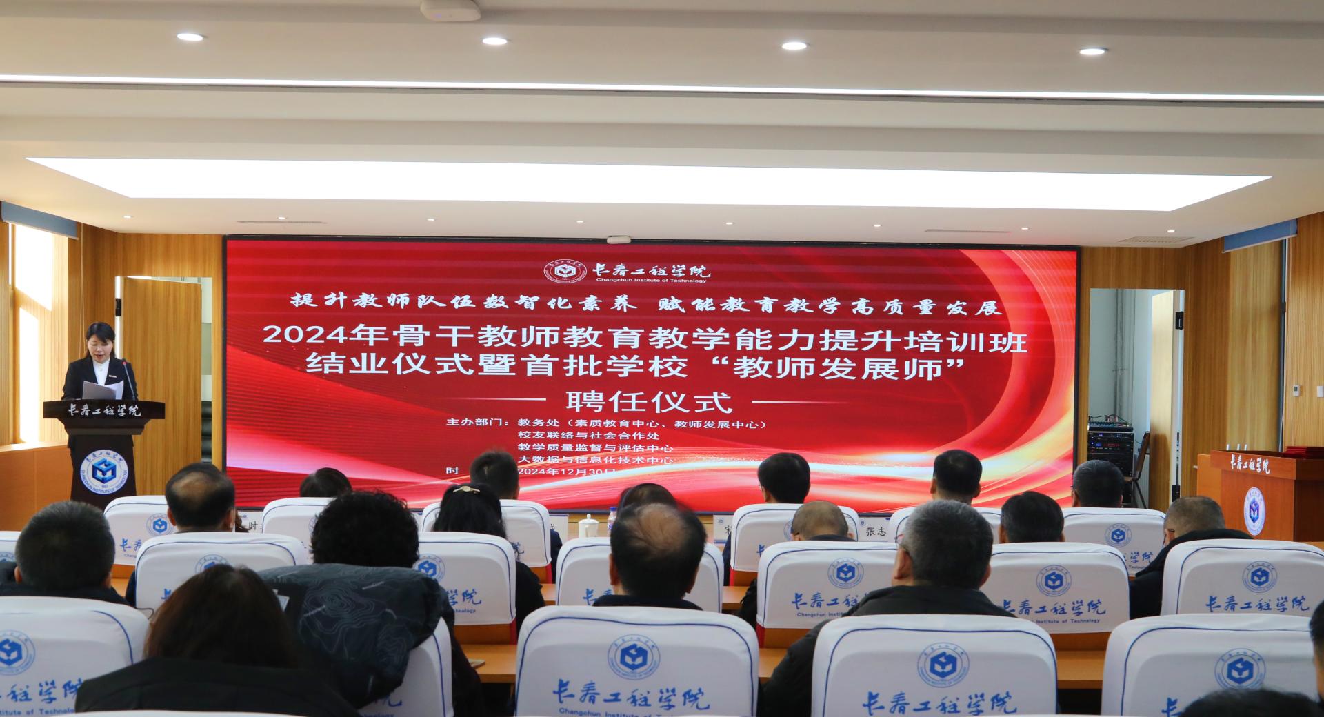 提升教师队伍数智化素养,赋能教育教学高质量发展。12月30日,“2024年骨干教师教育教学能力提升培训班结业式暨首批mk体育在线登录入口china官方网站‘教师发展师’聘任仪式”在mk体育在线登录入口china官方网站第一报告厅举行。mk体育在线登录入口china官方网站校长宋立军、副校长张邦成出席仪式。仪式由教务处处长、教师发展中心主任王文华主持。