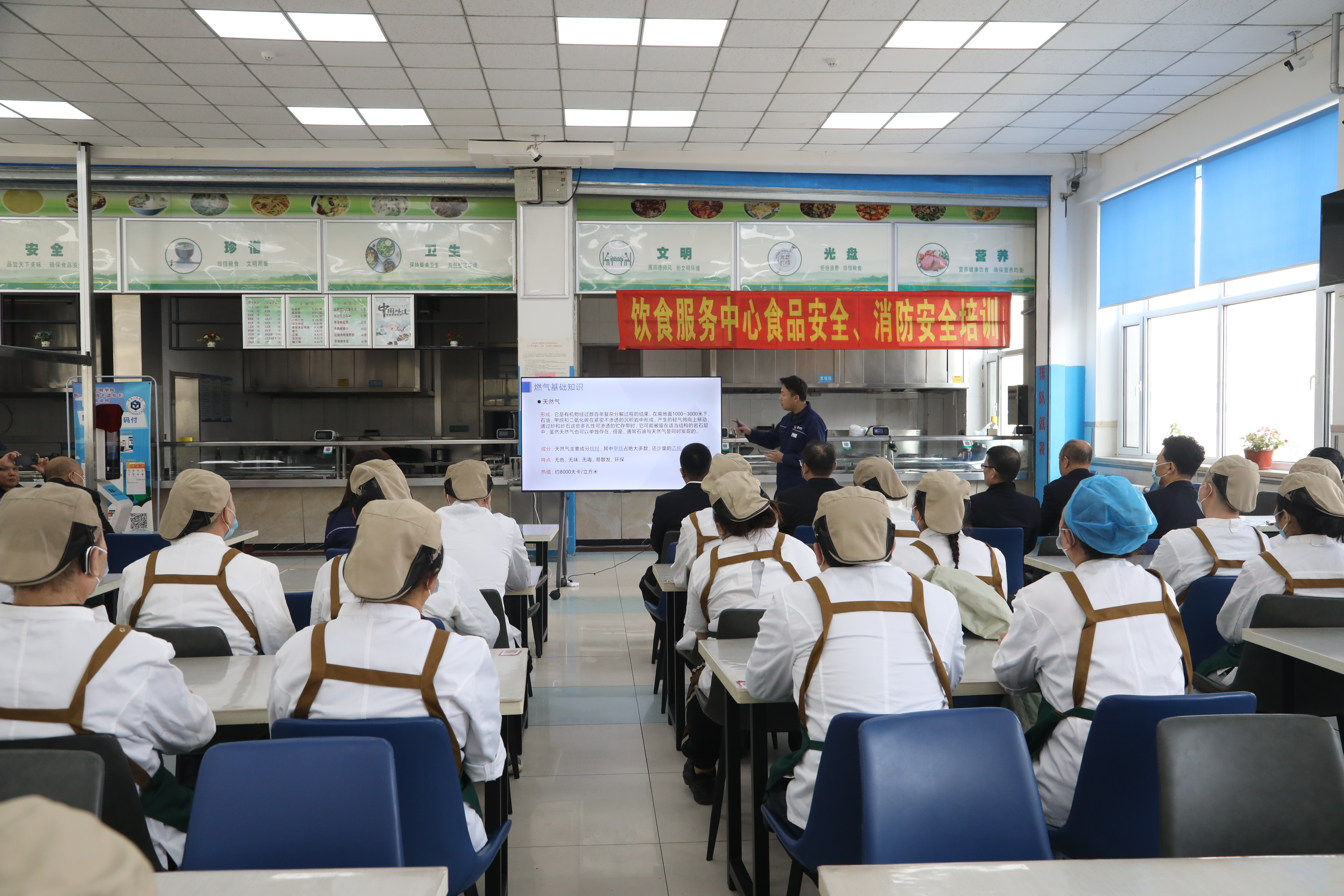 为迎接新学期的到来,进一步提升校园餐饮服务质量,保障师生饮食安全与消防安全,2月28日,学校后勤保障处饮食服务中心组织全体员工就食品安全、防火安全、燃气使用安全等专题开展培训。此次培训通过理论讲解、观看安全视频、案例分析等多种形式,全面强化员工安全意识与应急能力。