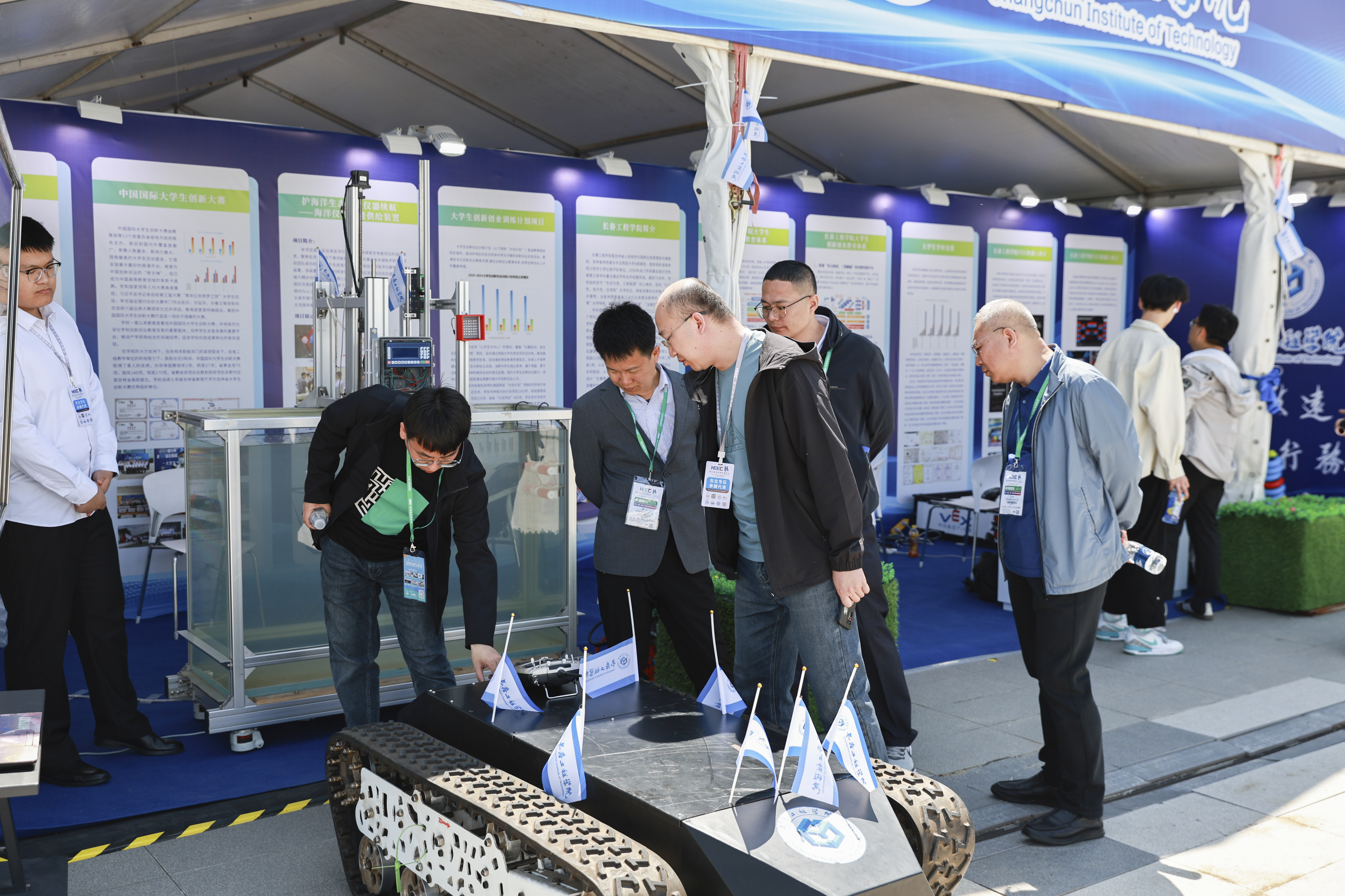 室外综合体验区,mk体育在线登录入口china官方网站大学生创新创业教育学院展示了学生的获奖作品。其中,“护海洋生态,强仪器续航——海上仪器电能供给装置”与“智行——全地形履带底盘”受到观众广泛好评。