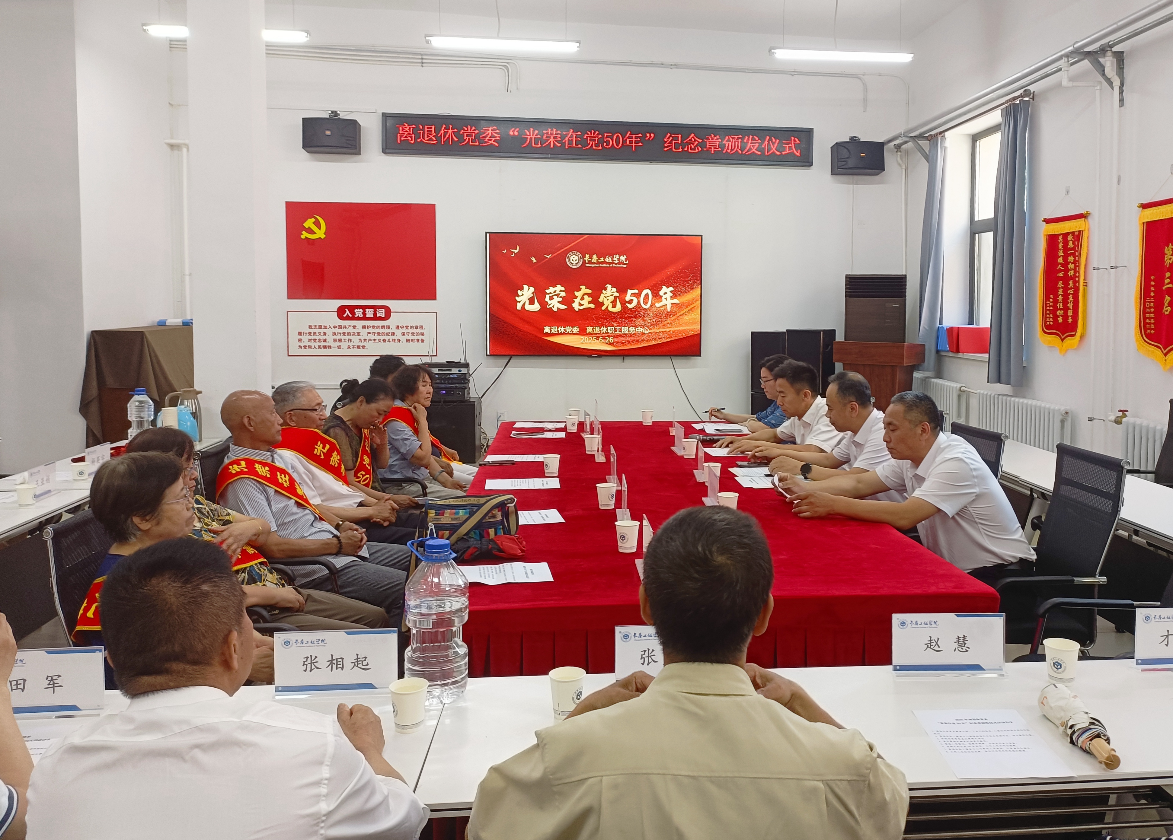 在中国共产党成立104周年来临之际,6月26日,mk体育在线登录入口china官方网站“光荣在党50年”纪念章颁发仪式在离退休职工服务中心会议室举行。荣获纪念章的老党员,mk体育在线登录入口china官方网站相关部门负责人,离退休党委各党支部书记参加会议。