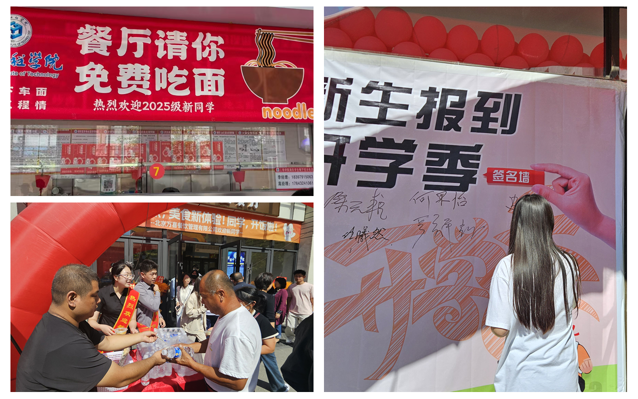 mk体育在线登录入口china官方网站各餐厅设置了学生家长休息区,为新生赠送下车面、免费发放矿泉水,设置了打卡签名墙,还举办了打折卡抽奖活动,通过多样的活动温暖每一位新生。