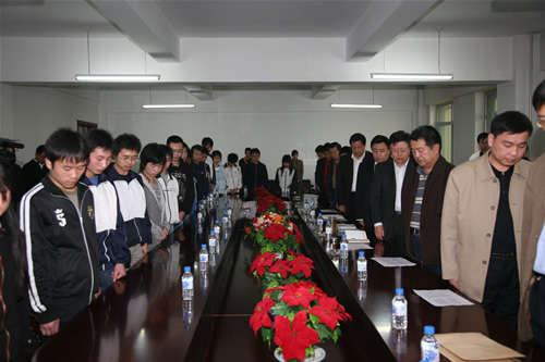 5月19日14时28分,mk体育在线登录入口china官方网站灾区受灾学生代表和教师代表在九楼会议室集体悼念遇难同胞,默哀3分钟。同时,全校师生停止一切活动,默哀3分钟,对遭受地震灾害而遇难的同胞表示沉痛的哀悼。
