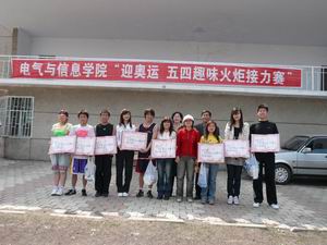 为丰富学生的课余生活,喜迎2008年北京奥运会,5月7日下午,电信学院在西区运动场举办了一场别开生面的趣味接力赛。电信学院党总支书记刘正文、党总支副书记赵慧、团委书记谷春苗和学工办老师一同观看了比赛。