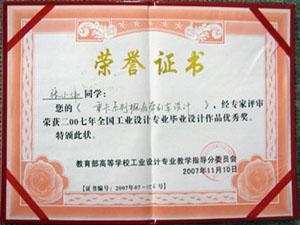 2007年我院工业设计专业各年级学生,在专业教研室的积极宣传、组织和各专业老师的认真指导下,结合所学专业知识,利用第二课堂时间,踊跃报名参加全国各级各类专业设计比赛,取得了可喜可贺的成绩,累计获奖数量达35人次,其中不乏在一些国内知名的设计大赛获奖(如:“东莞杯”国际工业设计大赛铜奖、“镇海杯”国际工业设计大赛铜奖;全国大学生广告艺术大赛银奖;“华典华人”创新设计大赛优秀设计奖(国内50名)、全国工业设计专业大学生优秀毕业设计作品奖等等)。