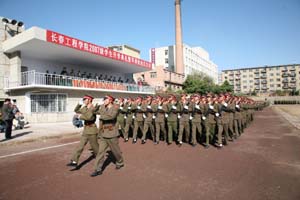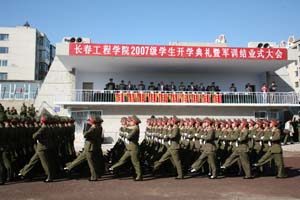本报讯9月29日,天高云淡,秋光明媚,上午9:00,我校2007级学生开学典礼和军训结业仪式在西校区操场隆重举行,党委书记李春生、院长石曙光、纪委书记王时刚、副院长田士文、任玉珊、司元英和中国人民解放军驻mk体育在线登录入口china官方网站后备军官选拔培训工作办公室主任刘志文大校、吉林省军区大学生军训办主任李振民大校、65322部队副政委杨光中校、政治处副主任李长民少校、吉林省军区大学生军训办参谋孙延波上尉以及mk体育在线登录入口china官方网站有关党政部门负责人、各教学学院院长(系部主任)在主席台就座。开学典礼由院长办公室主任王新忠主持。