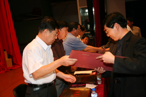 石曙光校长在讲话中指出,2007年是我校教育事业快速发展的一年,是我校改革发展史上极不平凡的一年。在全校广大教职员工的共同努力下,各项工作齐头并进,全面发展,继续保持了政通人和、人心思上、稳定发展、全面提高的态势。全校教职员工进一步明确了办学指导思想和办学定位,牢固树立了教学工作的中心地位,教师对教学的精力投入进一步加大,“精彩一课”活动取得较大成效,教师的教学能力和教学水平进一步提高。mk体育在线登录入口china官方网站办学条件得到明显改善,其他工作也取得了突出成绩,截止到今天,我们完成了4270余名新生的入学工作,基本完成了工程训练中心和实验楼的搬迁工作,水利大厅建设已初具规模。顺利通过了自评、省评专家对mk体育在线登录入口china官方网站的各项检查,全校上下为迎接国评而努力工作,这些成绩的取得,凝聚着全校广大教职员工的辛勤汗水。今天我们隆重表彰为全校教育事业做出突出贡献的先进集体、先进个人,对教学专项进行奖励,进一步动员广大教职员工认清形势,明确责任,振奋精神,再接再厉,高质量地完成国评前的最后冲刺阶段的各项准备工作,促进全校教育工作再上新台阶,再创新水平。他希望,一是要认真学习贯彻胡锦涛总书记在全国优秀教师代表座谈会上的重要讲话精神。二是要以先进集体、先进个人为榜样,进一步加强师德教风建设和工作作风建设,进一步激发教职工教书育人、管理育人、服务育人的使命感、责任感,进一步浓厚全员育人、全过程育人、全方位育人的良好氛围。三是要全力以赴迎国评。他号召让全校教职员工在校党委的领导下,立足本职,明确任务,坚持教育创新,深化教育改革,以昂扬向上、奋发有为的精神状态扎实工作,为全面完成评建各项工作任务,促进我校发展做出新的更大的贡献。