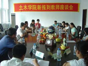 7月10日土木学院召开了迎接新教师座谈会,热烈欢迎07年招聘的9名新教师。韩立强副院长到会并讲话,土木学院新教师、党政领导班子成员、教研室主任参加了座谈。