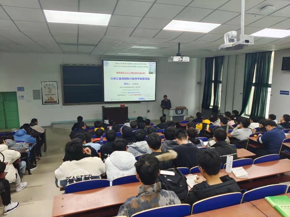 会上,王璞珺教授从国际大陆科学钻探计划ICDP是什么?为什么要开展松辽盆地国际大陆科学钻探?松辽盆地开展钻探的优势是什么?开展科学钻探对松辽盆地有何新的再认识等几个方面进行了介绍。他详细讲述了中国团队在国际科研领域通过竞争获得ICDP唯一资助的过程,松辽盆地科研钻探实施的历程,并图文并茂地介绍了松辽盆地国际大陆科学钻探项目对搭建高精度地层格架、重新认识盆地演化、油气勘探和钻井技术的全面提升、特别是运用“将古论今”的思维在应对全球气候变化和碳循环方面的重要意义,鼓励师生地质探索是永无止境的,专业前景充满光明。
