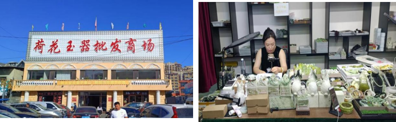 调研团队与鞍山市宝玉石协会江成忠副会长就玉雕人才培养、旅游+原产地玉石的经济模式、岫玉开采与利用进行了深入探讨;在辽宁省岫玉产品监督检验中心,代旭质检师分享了岫岩老玉、花玉、翠玉、河磨玉、岫玉180玉料的玉质特点及鉴定技术诀窍;在直播基地,团队成员深入了解了电商直播流程、现场观摩主播带货直播;在雨桐玉文化博物馆,团队成员参观了馆藏红山玉器,就红山玉器的材质来源进行讨论与分析。