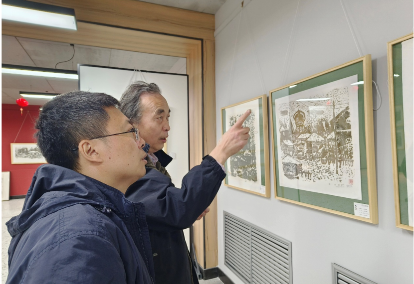 随后,团队成员前往黑龙江东方学院艺术设计学院拜访冰版画创始人朱晓东教授。参观冰版画艺术中心,学习和交流冰版画制作工艺。