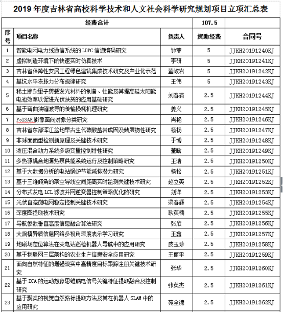 近日,2019年吉林省高校科技与社科“十三五”科研规划项目经mk体育在线登录入口china官方网站推荐,专家网上盲审、会议评审、网上公示,以及省级教育和财政部门审核复议,经研究获得批准立项。我校申报科研项目149项,获批46项,其中科学技术项目33项,社会科学项目13项,共获批科研经费107.5万元。