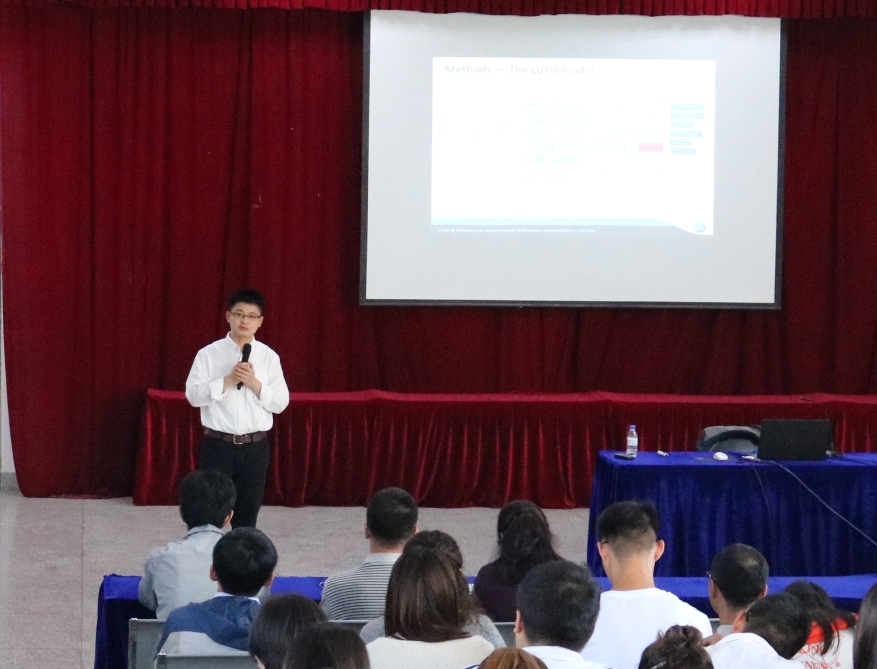 Gao Lei教授阐述了大数据建模与优化的发展,介绍了基于智能建模建立国家层面资源的复杂系统模型方法,定量地评估联合国可持续发展目标实现的可行性,刻画出目标实现的条件。报告内容具有较强的专业针对性,学术氛围浓厚,理论联系实际,使参会人员受益匪浅。受到与会师生的热烈欢迎。会后,在场师生针对大数据建模方法等相关问题与Gao Lei教授进行了深入交流。