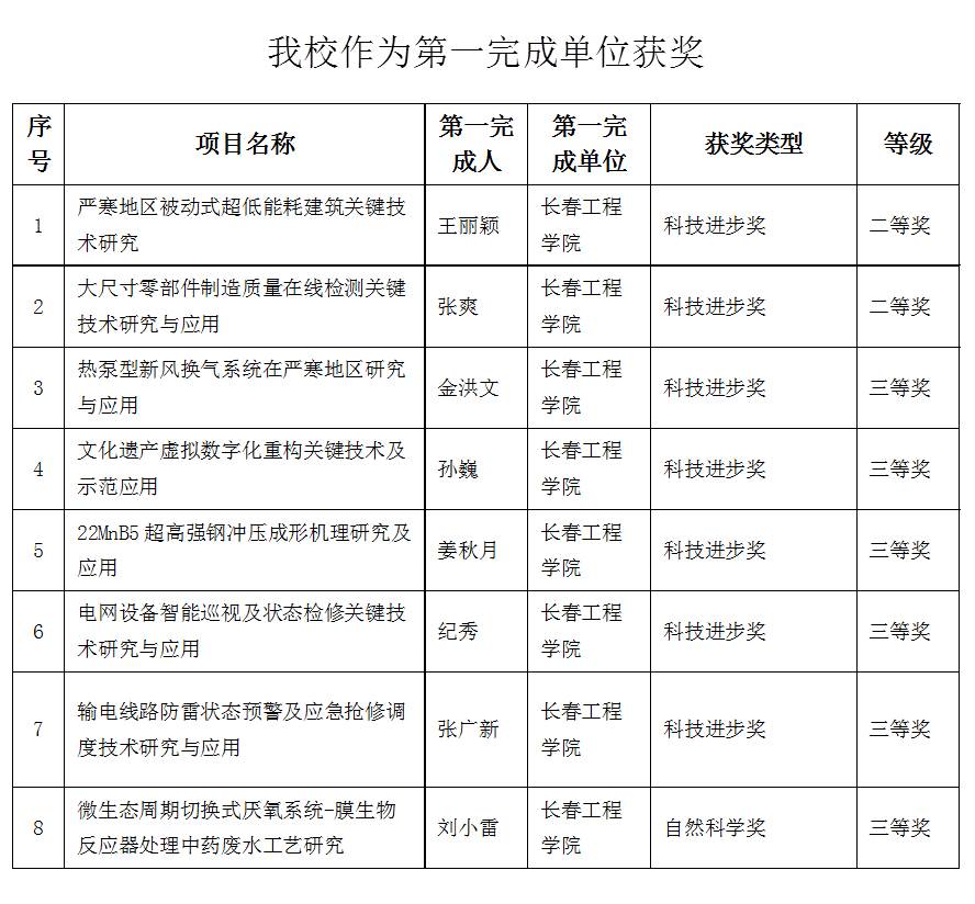 日前,吉林省科技厅公布了《mk体育在线登录入口china官方网站授予2019年吉林省科学技术奖的决定》。我校设计院王丽颖申报的项目“严寒地区被动式超低能耗建筑关键技术研究”与机电工程学院张爽申报的项目“大尺寸零部件制造质量在线检测关键技术研究与应用”获得科技进步二等奖;能源动力工程学院金洪文等申报的项目获得科技进步三等奖5项;水利与环境工程学院刘小雷申报的论文获得自然科学三等奖1项;水利与环境工程学院边德军与其他单位合作申报的项目获得科技进步二等奖1项。