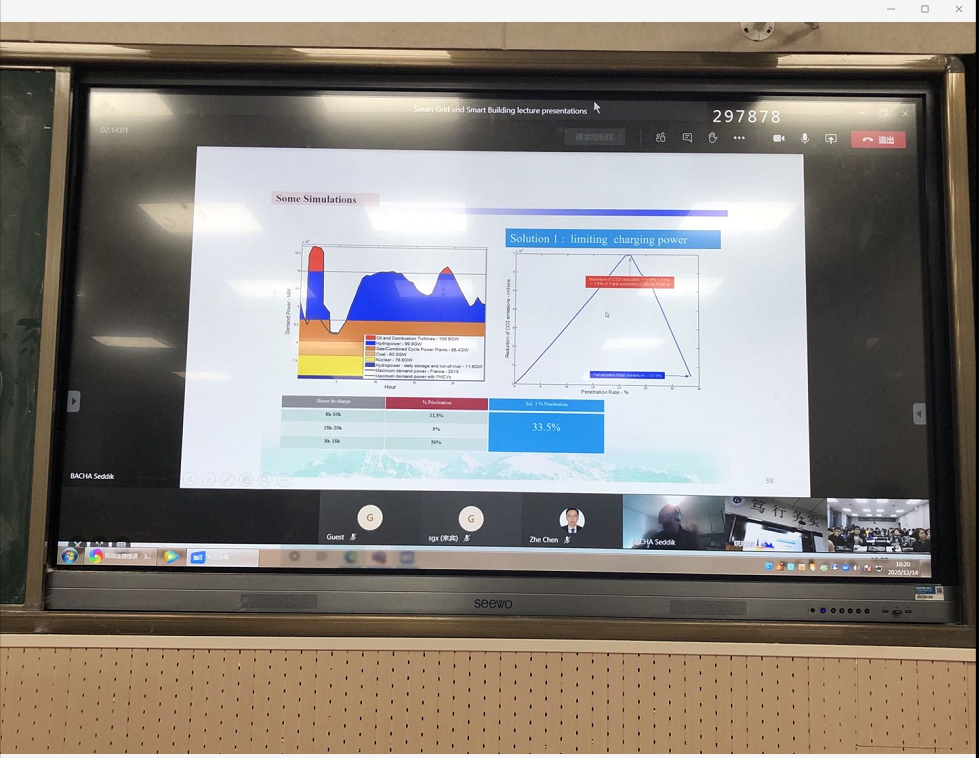 报告会上,Professor Seddik Bacha对电动汽车的基础原理、结构、历史与发展进行了详细介绍,并分析了大规模的电动汽车接入电网对原有电网的影响和挑战。Dr. JAROSLAV JERZ介绍了可再生绿色清洁能源的发展状况,相变材料的原理和微观结构分析,以及相变材料在建筑中使用的广阔前景。两位专家的报告内容深入浅出,会场气氛热烈,拓宽了与会师生的学术视野。会后,两位专家与参会师生进行了深入交流,并在诸多研究领域交换了心得体会。