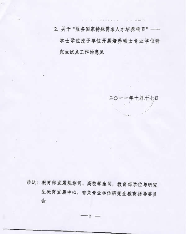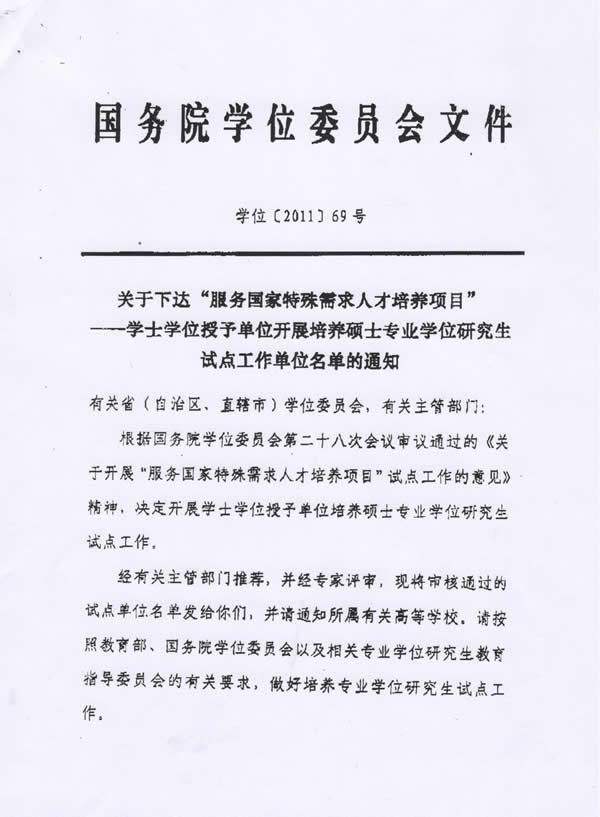 mk体育在线登录入口china官方网站下达“服务国家特殊需求人才培养项目”—学士学位授予单位开展培养硕士专业学位研究生试点工作单位名单