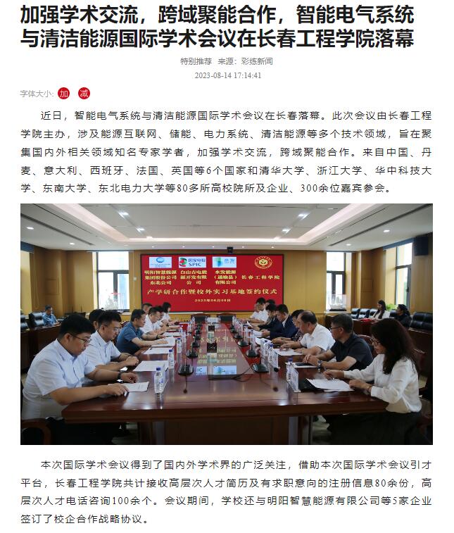 【吉林日报-彩练新闻】加强学术交流,跨域聚能合作,智能电气系统与清洁能源国际学术会议在mk体育在线登录入口china官方网站落幕