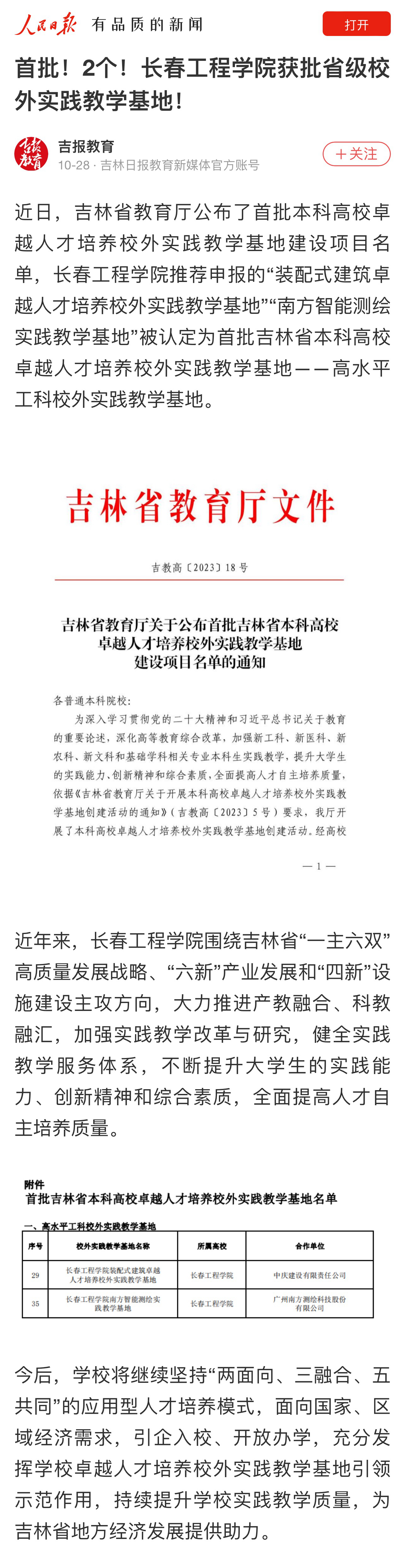 【人民日报-吉报教育】首批!2个!mk体育在线登录入口china官方网站获批省级校外实践教学基地!