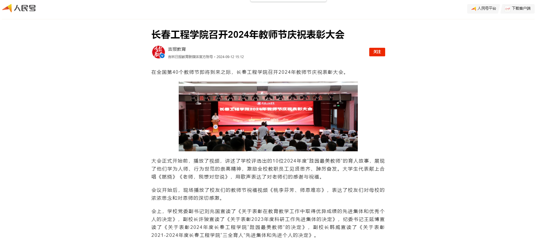 人民日报等多家媒体报道我校2024年教师节庆祝表彰大会