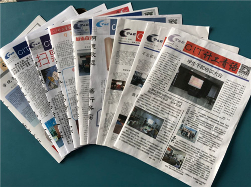 为了拉近学院师生的距离,使思想政治教育的阵地多元化,学院于 2018 年 3 月开始,打造了学院《CIT 计工青语》院报,由学生记者团自己设计、选取素材、排版和印刷,并坚持每一个半月发行一期,目前,院报已经制作发行了八期。