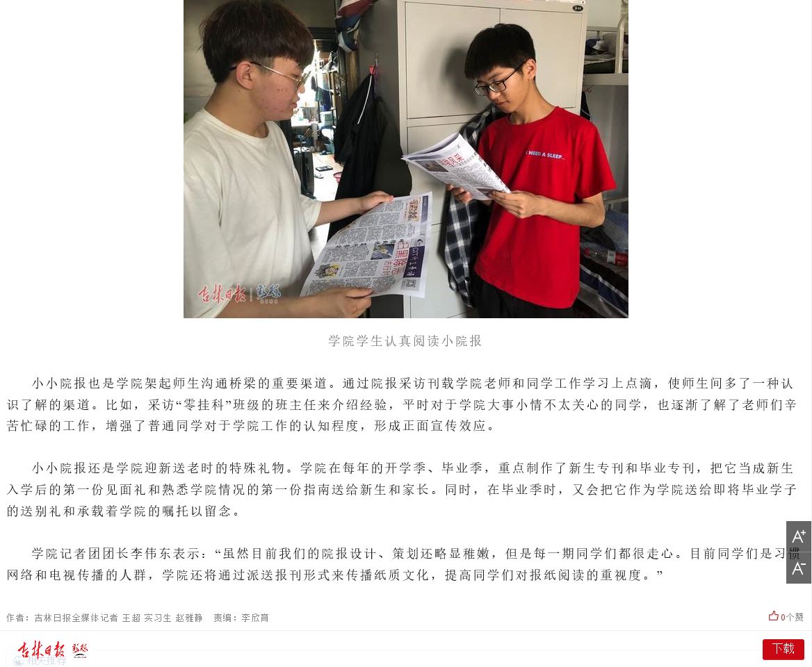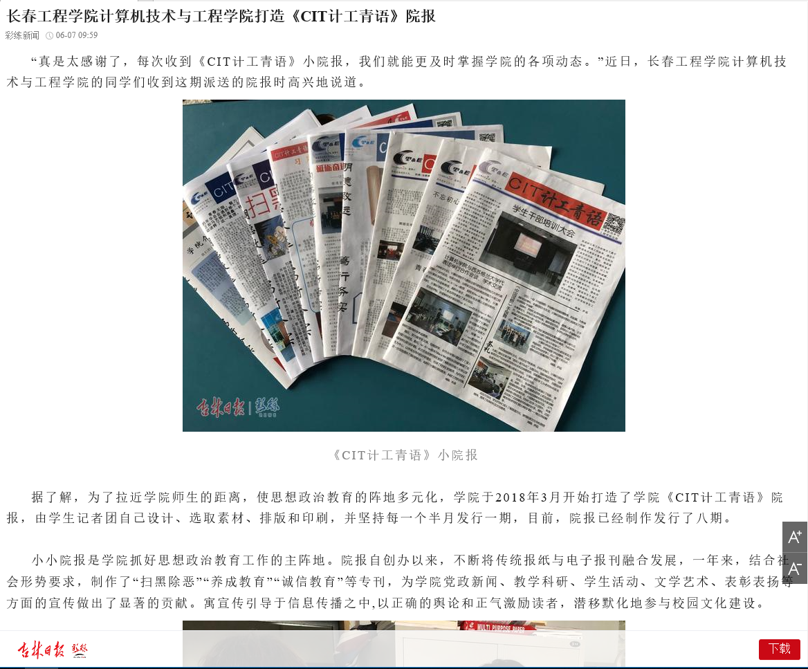 【吉林日报】mk体育在线登录入口china官方网站计算机技术与工程学院打造《CIT计工青语》院报