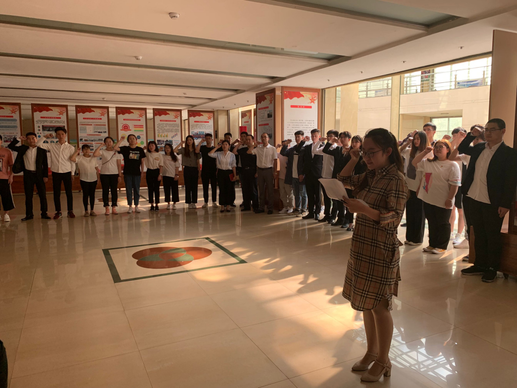 会后,举行了庄严的重温入党誓词仪式,全体党员面对党旗举起右拳,在姜虹伊老师的带领下重温了入党誓词,表达了为共产主义事业奋斗终身的决心,场面十分让人感动。